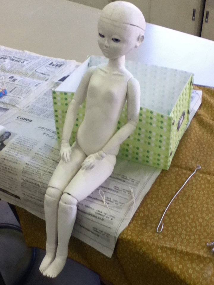 仕上げの塗装が一番難しかったです。うっかり乾かしすぎて筆跡が消えない。メイクも眉が全然描けず、諦めてパステル色鉛筆で描いてます。筆と絵の具とはまだ仲良しになれない。他の部分も全部パステル色鉛筆でメイクしました。なのでなんだかイラストみたいです。