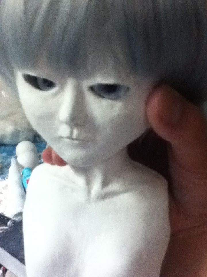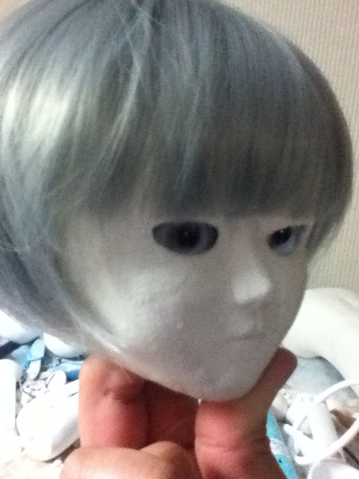 最初ウィッグがはまらなかったので頭を削りました。