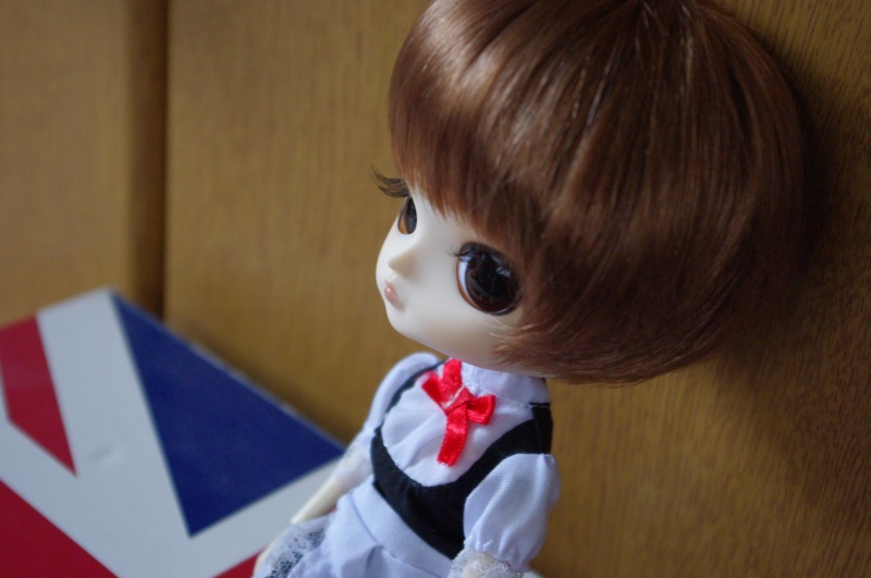 自作ドールが被ってたのとおなじウィッグです。自分でメイクを変えてみたので若干線がガタガタ。雰囲気が柔らかくなった。